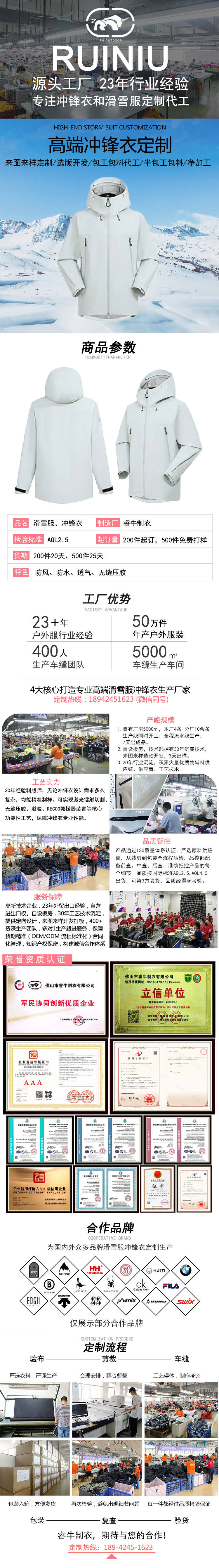 高端壓膠沖鋒衣定制 擁有專業生產設備,400+資深生產團隊